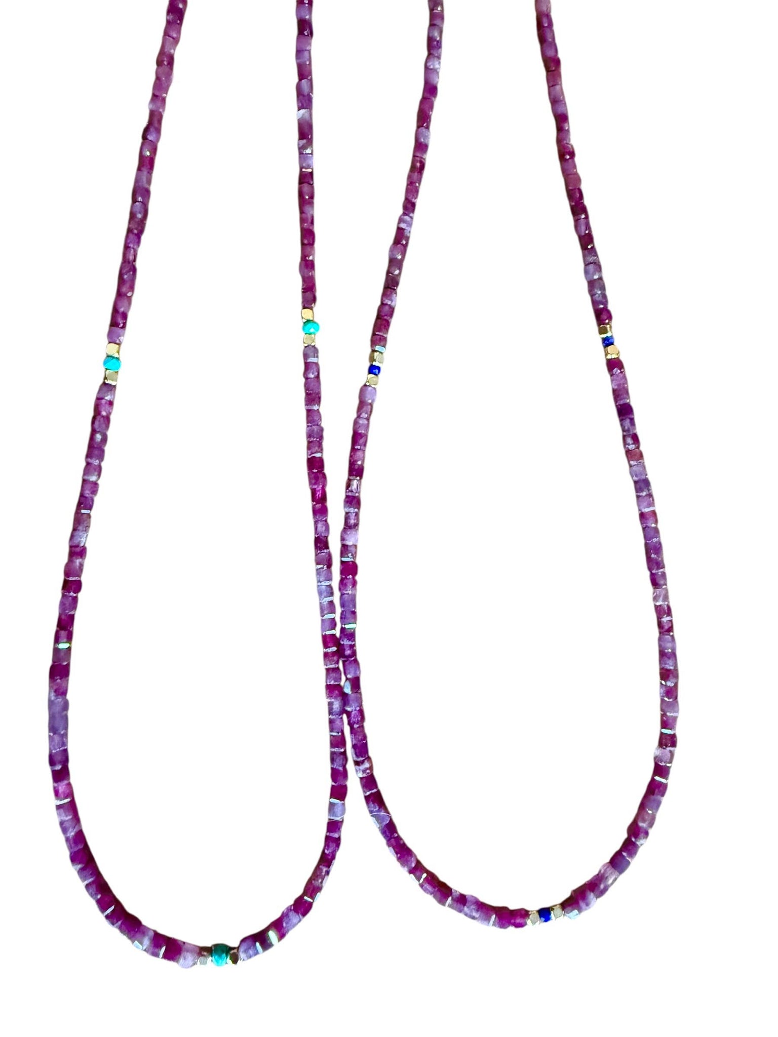 14kt gf clasp, little gold plated accent beads, precious cubes in semi precious gemstones. Choose from TQ accent beads or Pearls ((did a custom with lapiz as shown)),,, More colors available. includes 2" extender.