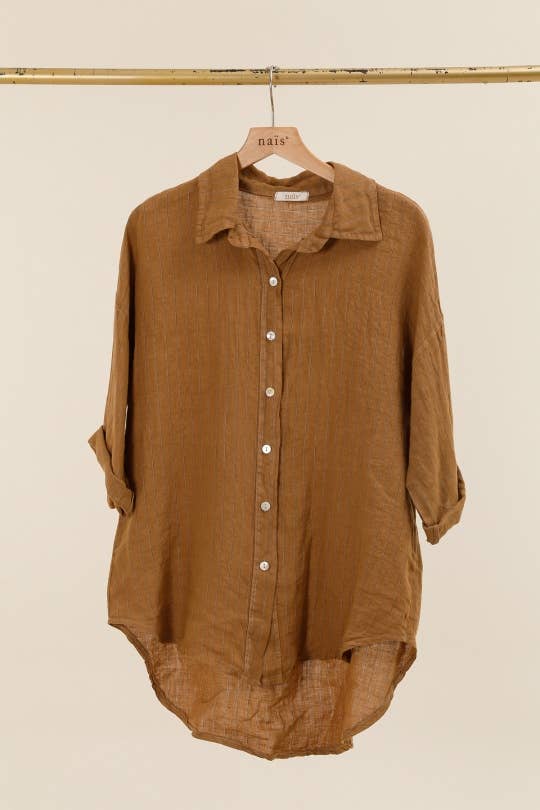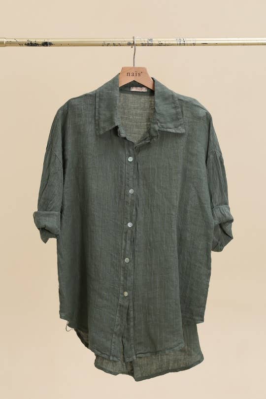 3/4 SLEEVE STRIPED SHIRT 100% LINEN ONE SIZE (36-42) THE MANNEQUIN MEASURES 1.71m PRODUCT MADE IN ITALY REF LI10130