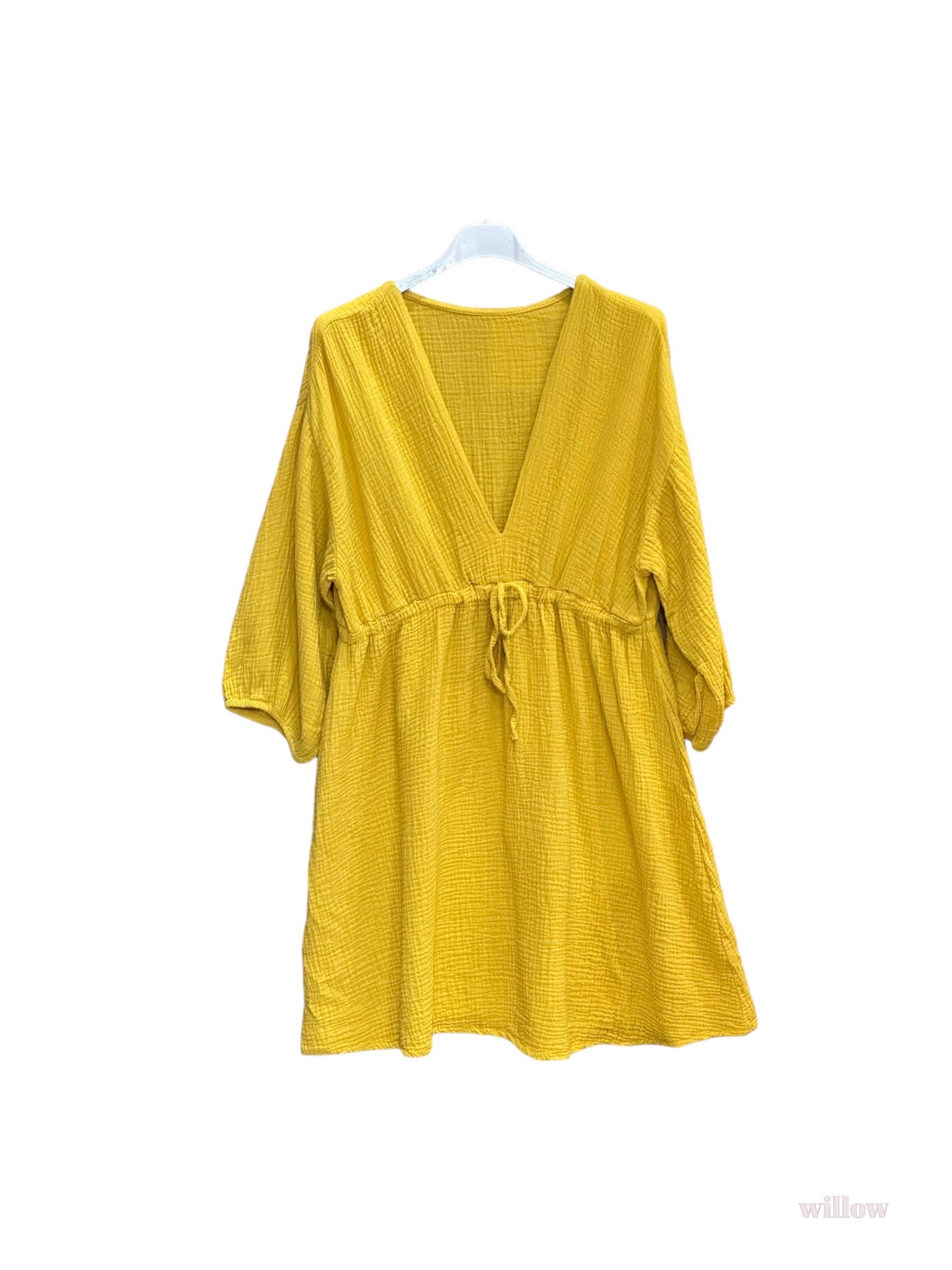 This light and airy summer dress is made of high quality cotton gauze, offering optimal comfort in hot weather. Its flowing, relaxed fit makes it ideal for sunny days and summer getaways. The main feature of this dress is its elasticated waist, which provides a perfect and flattering fit for any figure. The dress also features a rounded neckline and thin straps for a feminine and delicate touch.