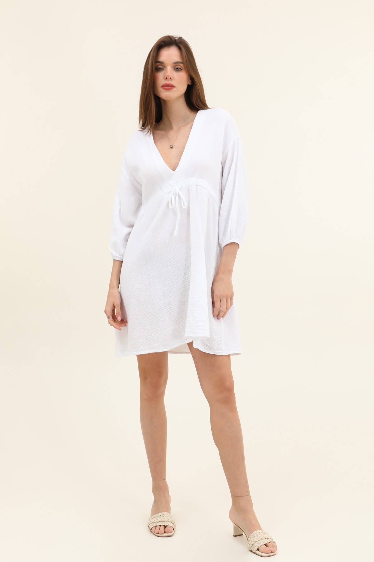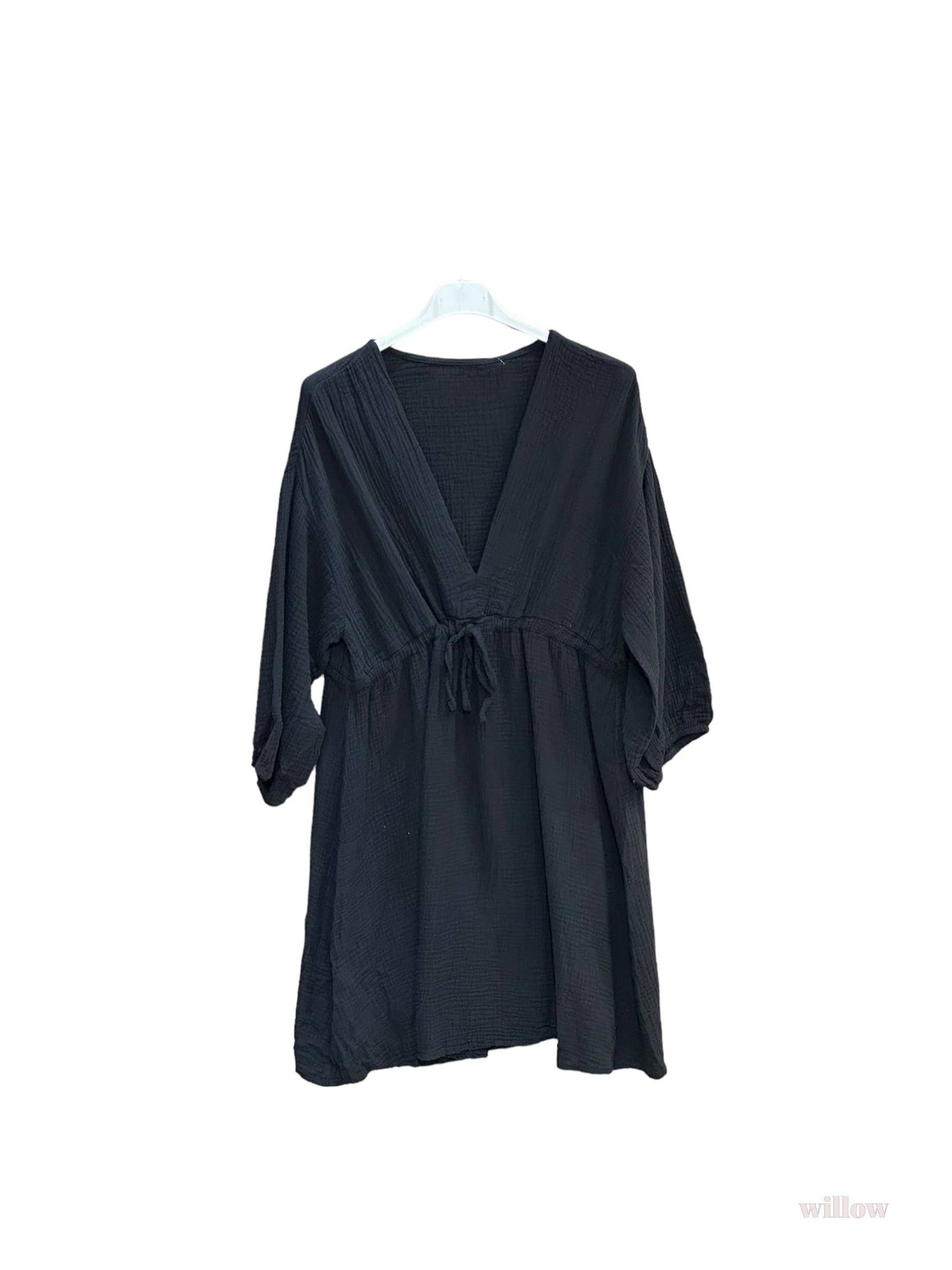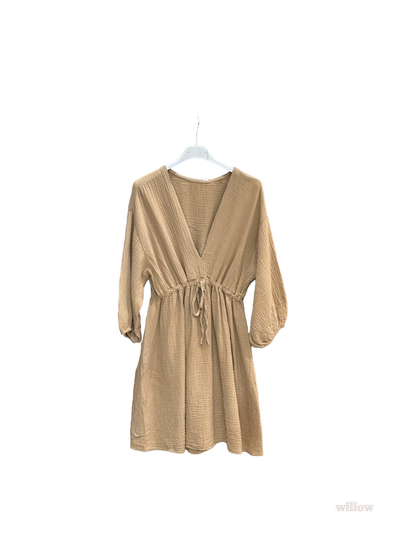 This light and airy summer dress is made of high quality cotton gauze, offering optimal comfort in hot weather. Its flowing, relaxed fit makes it ideal for sunny days and summer getaways. The main feature of this dress is its elasticated waist, which provides a perfect and flattering fit for any figure. The dress also features a rounded neckline and thin straps for a feminine and delicate touch.