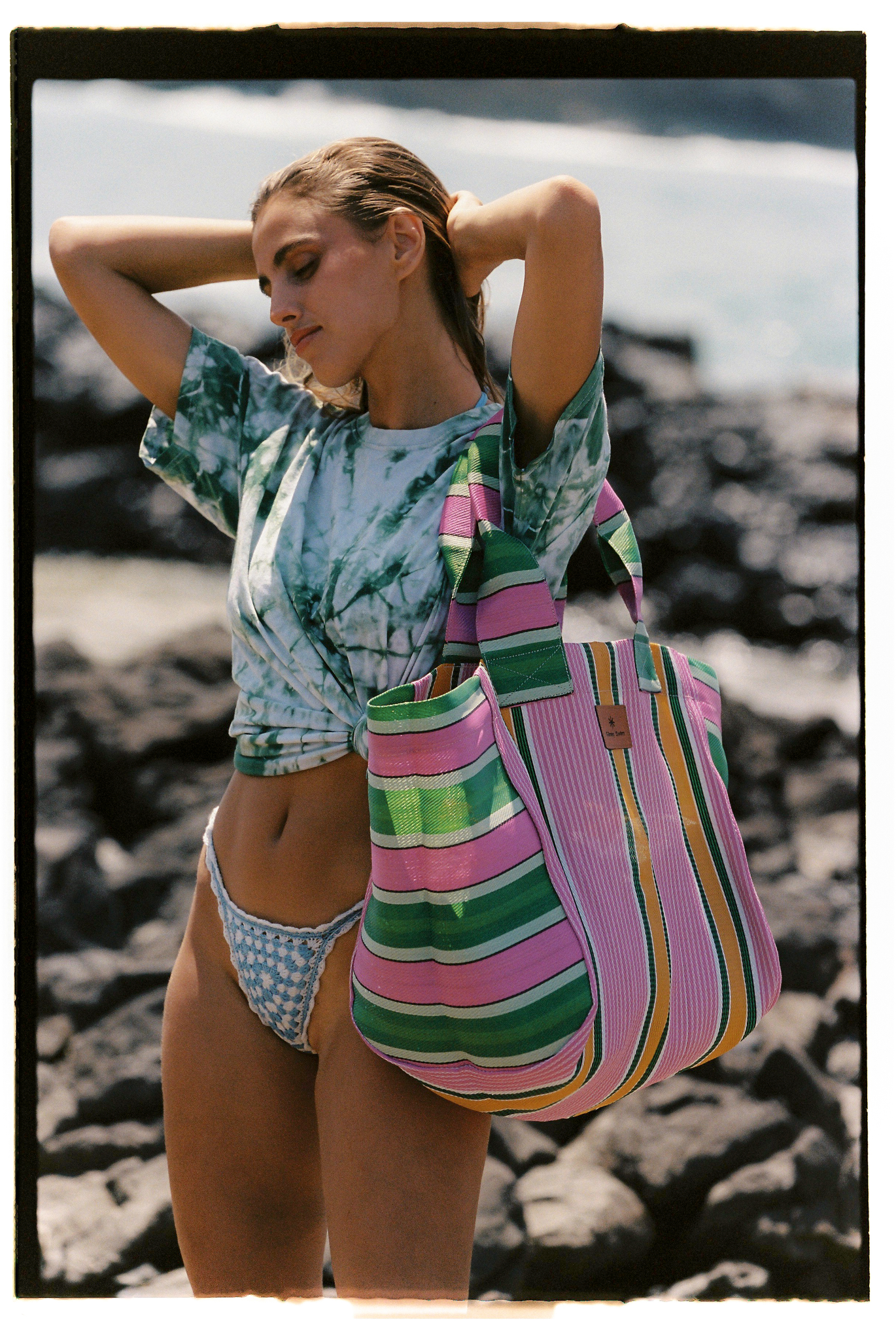 The Bundle Tote embodies both form and function, making it a stylish and practical tote choice. Its adaptability and durability, complete with a spacious main compartment and interior pocket, allow you to elevate or keep it casual, depending on the occasion. Crafted from Gunes's signature recycled nylon, available in fresh seasonal hues. Expect fading due to the eco-friendly natural colours so inconsistencies may occur, adds to the beauty and uniqueness of the bag. ☀ Recycled nylon ☀ Made in India ☀ Size - L45cm x W35cm x side 24cm. ☀ Strap length 65cm.