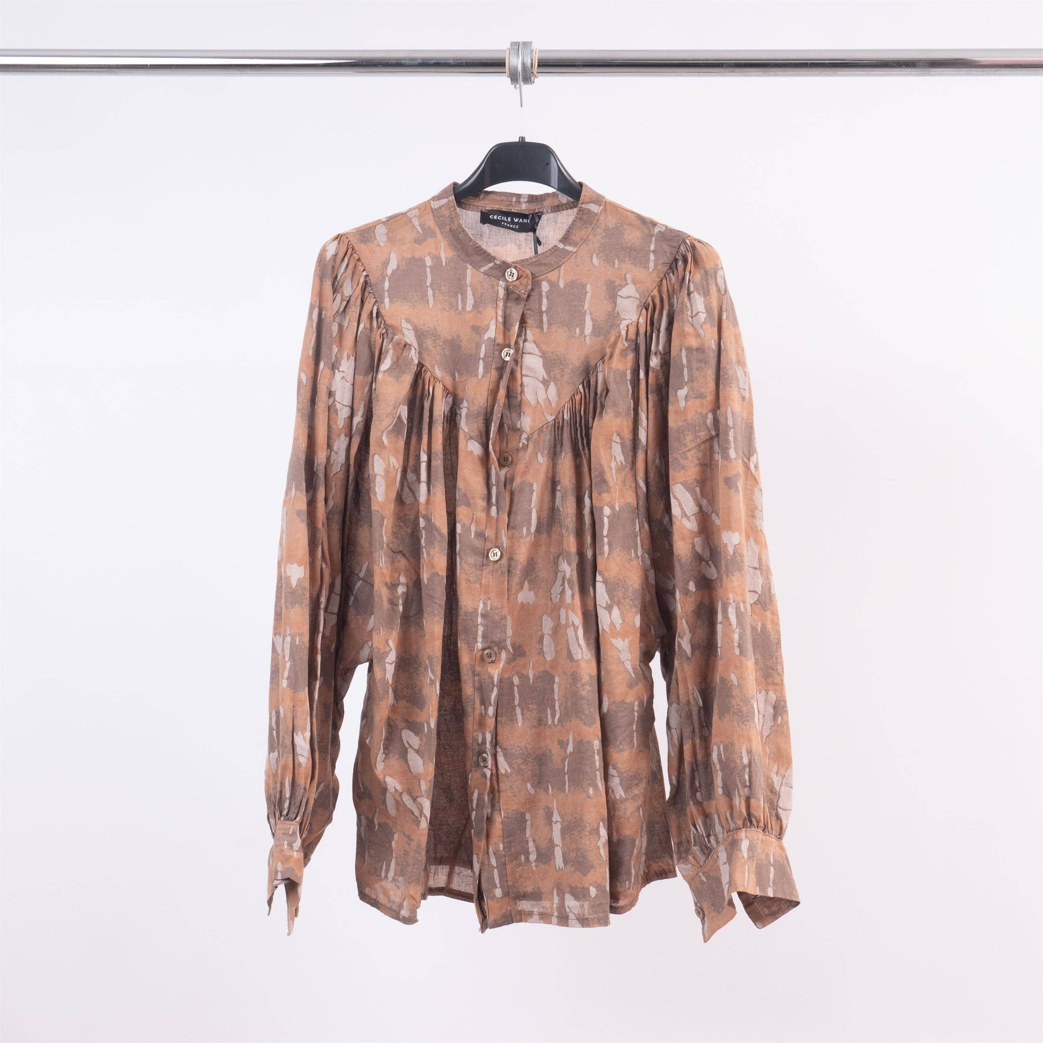 Cotton puff sleeve shirt TD65921-2: Khaki One Size