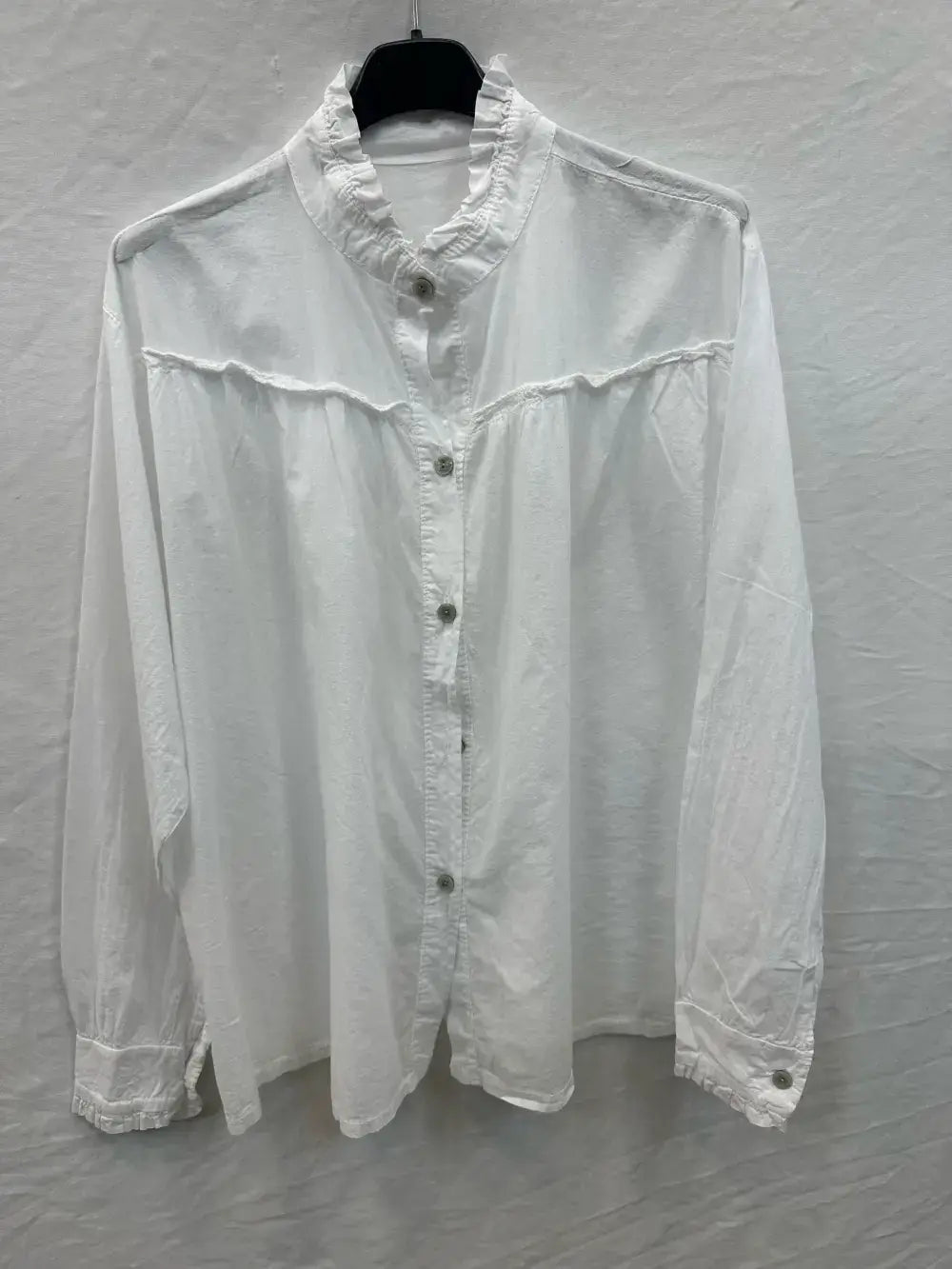 Ruffled cotton shirt, one size fits all, suitable for sizes 36 to 42. 100% Cotton