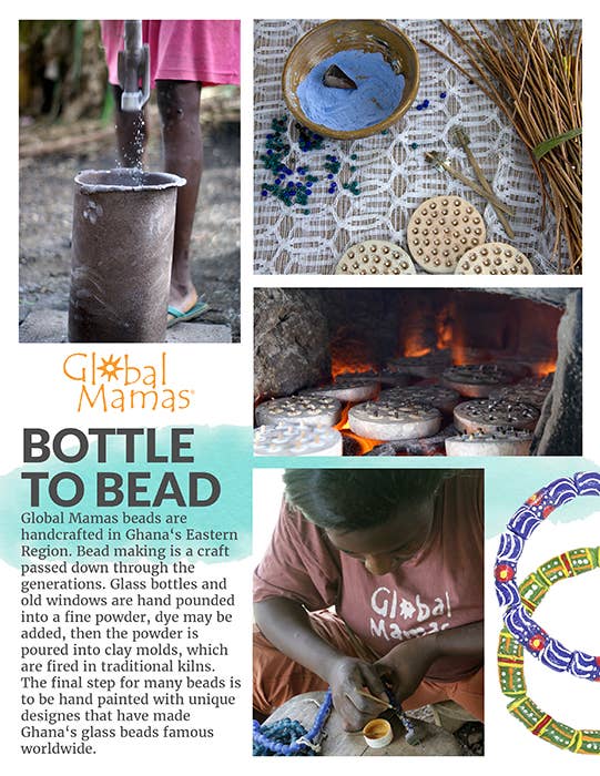 Global Mamas' beads are made from recycled glass. Due to each piece's individuality, all sizes and lengths are approximate. Necklace findings are silver plated. Two strands with inside strand ~19" and longest strand ~20.5".