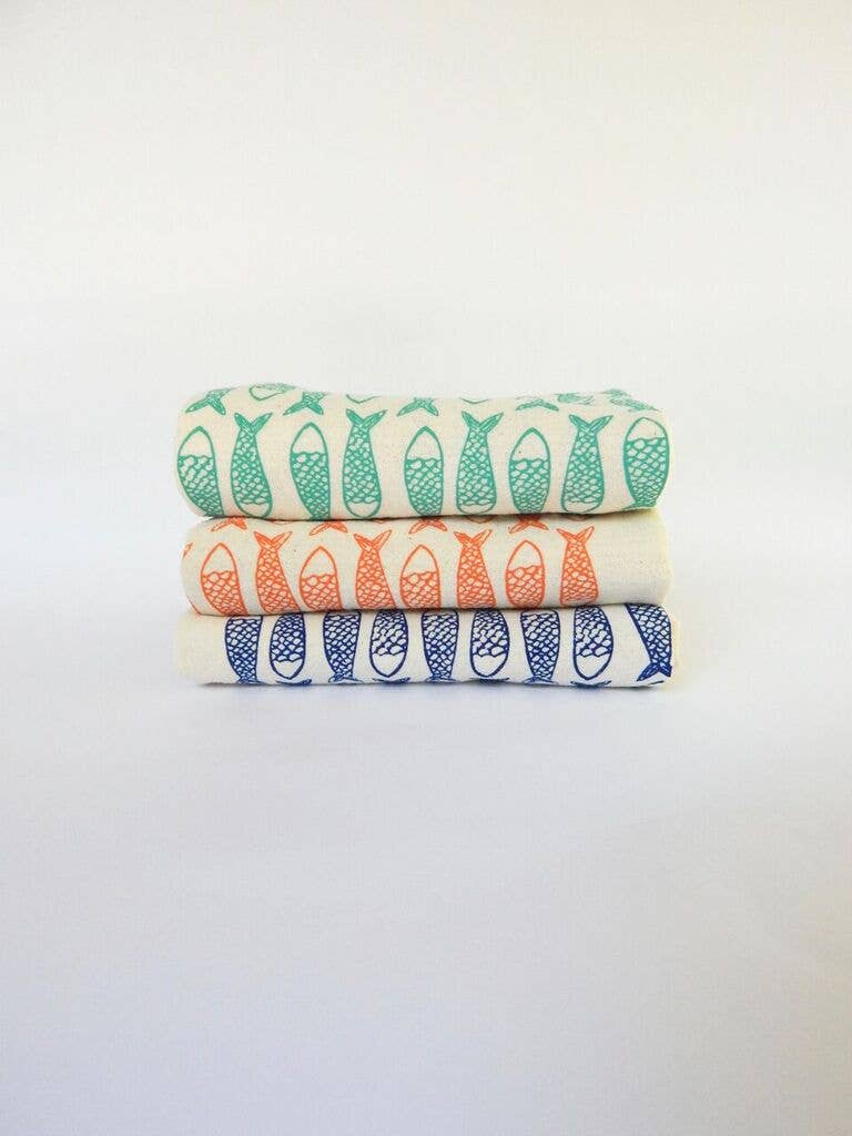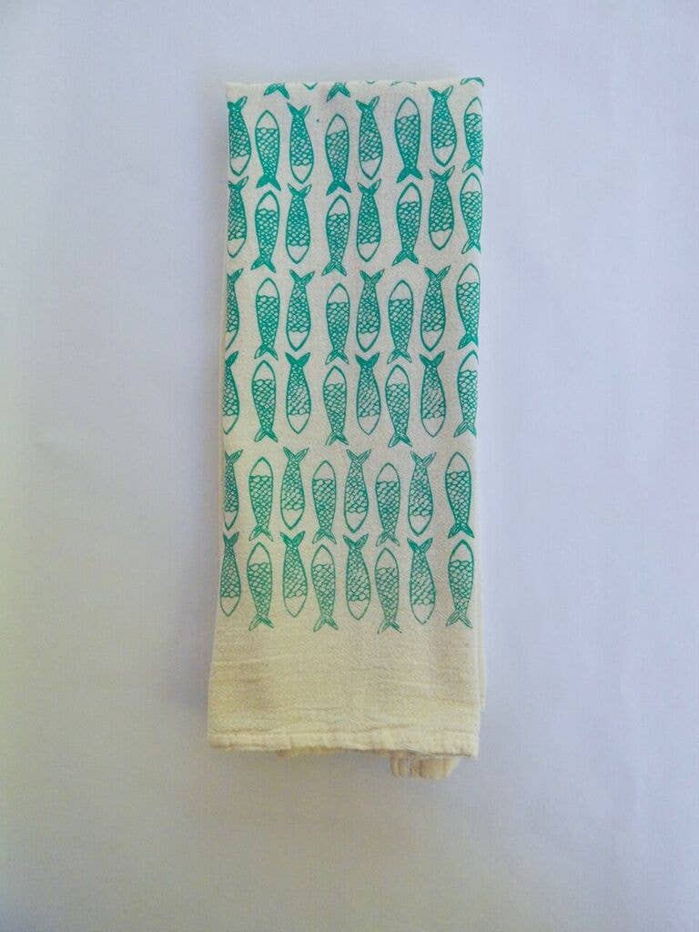 Handprinted with our fish illustration in our studio in Asheville, North Carolina using water based, environmentally friendly, non toxic, and permanent inks.