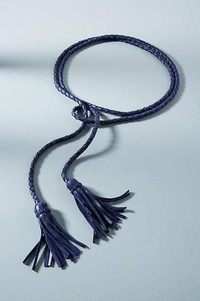 One of our most popular styles, the v is a double wrap belt with a woven rope and finished with a fringe tassel. This belt is one size, comfortable, easy to wear and perfect for cinching in and creating a waist.