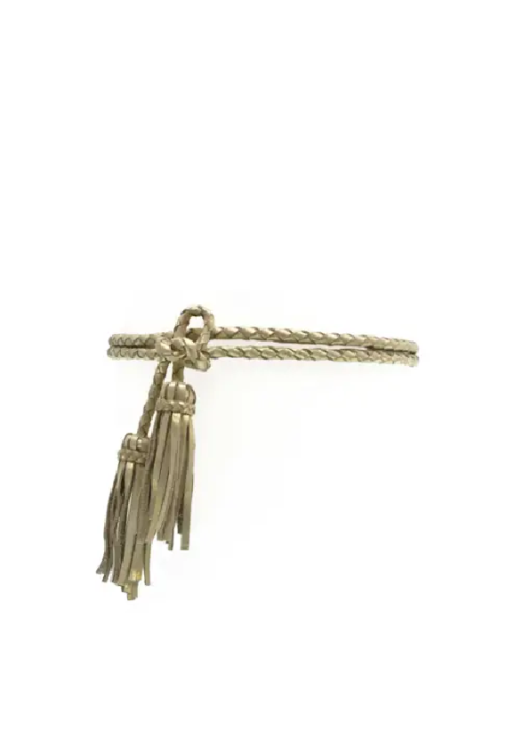 One of our most popular styles, the v is a double wrap belt with a woven rope and finished with a fringe tassel. This belt is one size, comfortable, easy to wear and perfect for cinching in and creating a waist. OS 99” / 251 cm (L) x .25” / 1 cm (W) - Jean size 0-22