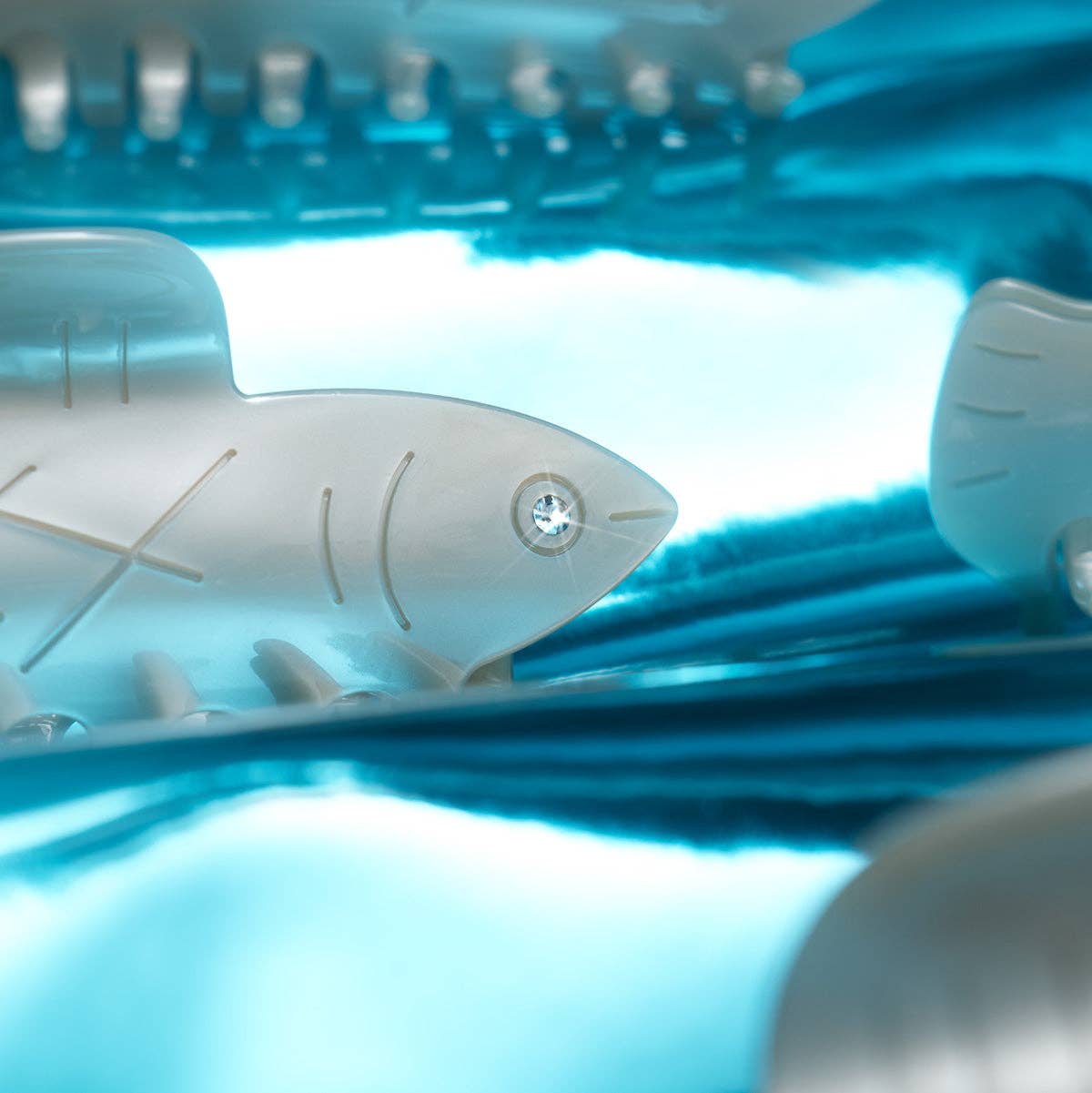 Featuring a claw that gently and securely wraps around and holds lots of hair, this sweet silvery fish brings just the right amount of sparkle.