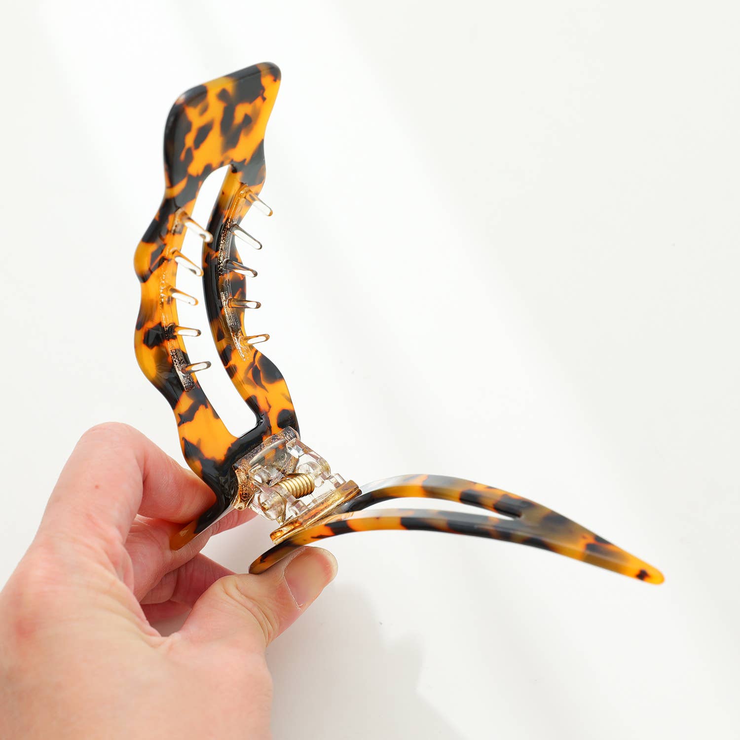 Jane Core Large (4.5 inch) Adorro Exclusive: designed in Chicago Featuring a scalloped rectangle shape, this 4.5 inch claw clip is a flat design that will hold short/med hair and is great for half-ups. This claw works best with thinner/lightweight hair. Available in our core colors: tortoise, blonde tortoise, pearl, and speckle black/beige. Made with eco-friendly material that is both durable and comfortable. Pack includes: 3 of each color Measurements: 11.5cm x 4cm x 5cm 25g Materials: Cellulose Acetate (eco-friendly) Cellulose Acetate is a synthetic fiber produced from plant derivatives such as wood pulp and cotton. CA is both durable and biodegradable. Compared to acrylic/PVC materials, our clips will last you longer. *Each claw will have slight variations of color and pattern due to how the cellulose plates are cut during our production. *Actual colors may vary slightly from what appears online due to lighting and differences in monitors.