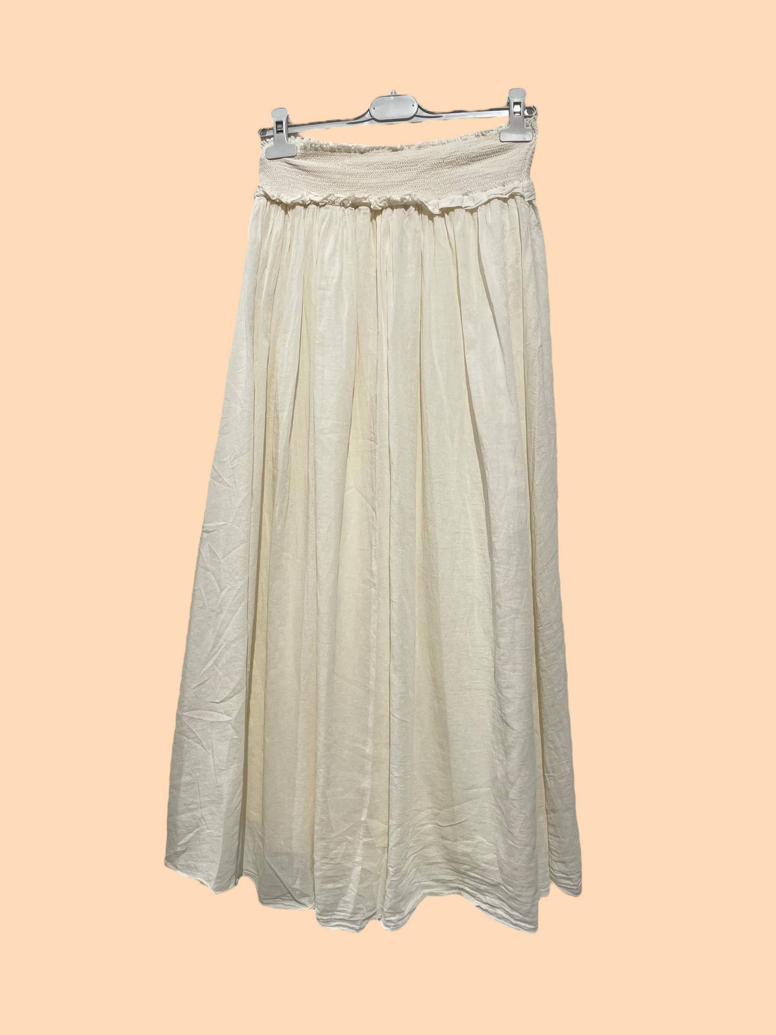 Long cotton voile skirt – 100% cotton, lined Size: One size Length: 95cm 1/2 Waist: 38-48cm Measurements may vary by 1-2 cm due to manual measurement