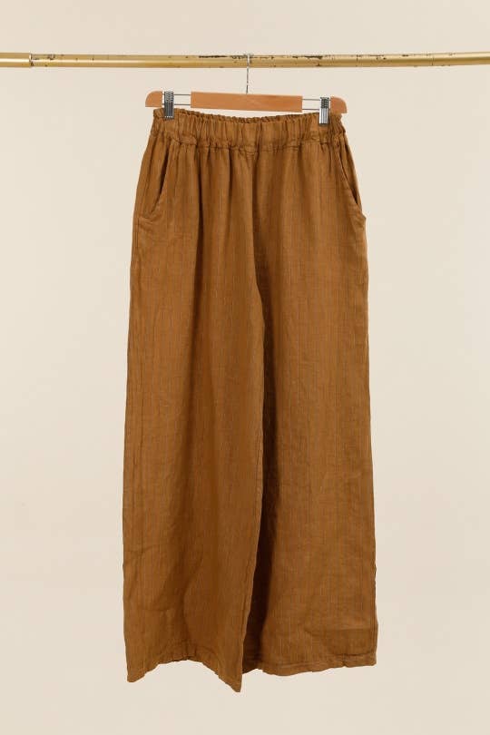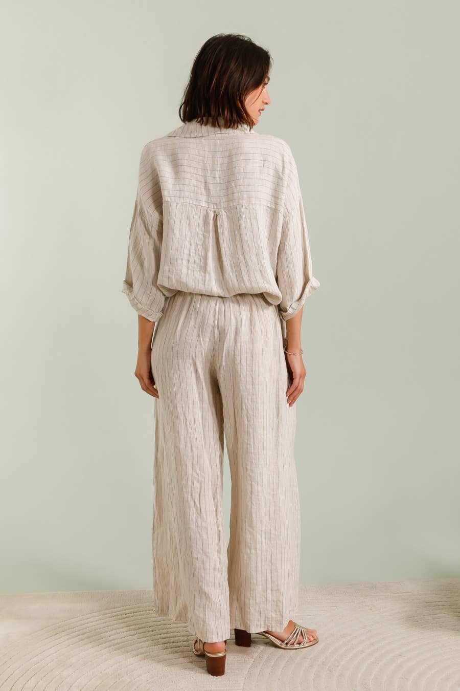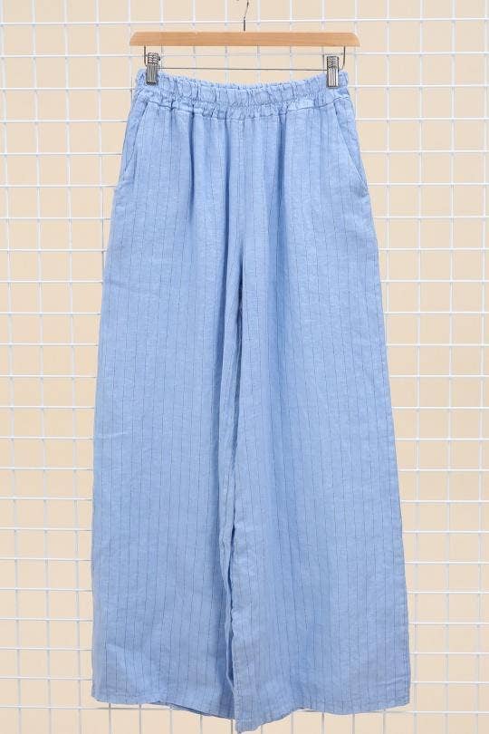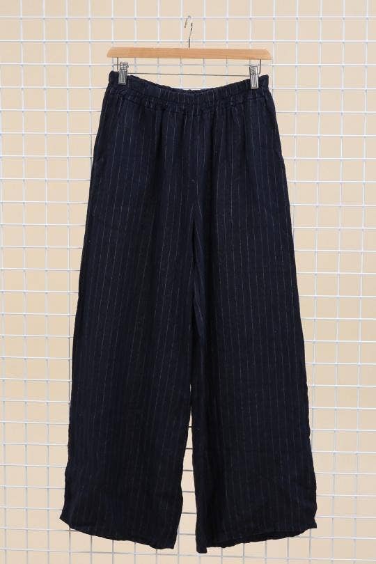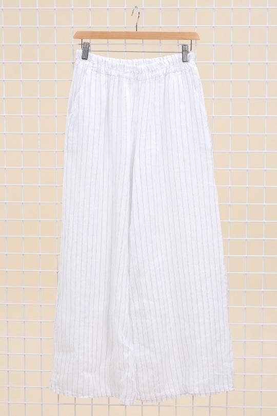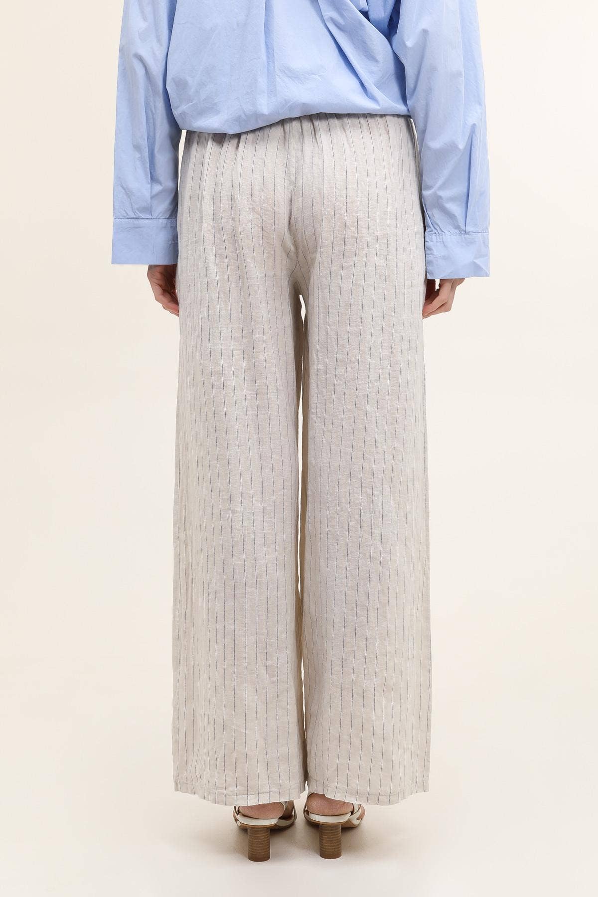 WIDE STRIPED PANTS ELASTIC AT THE WAIST 100% LINEN ONE SIZE (36-42) THE MANNEQUIN MEASURES 1.71m PRODUCT MADE IN ITALY REF LI10126