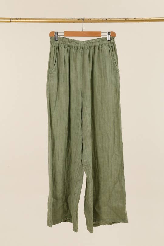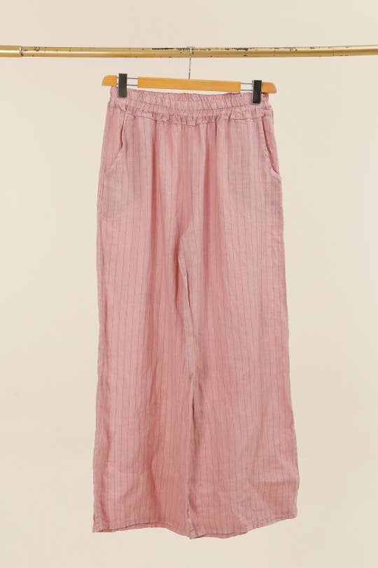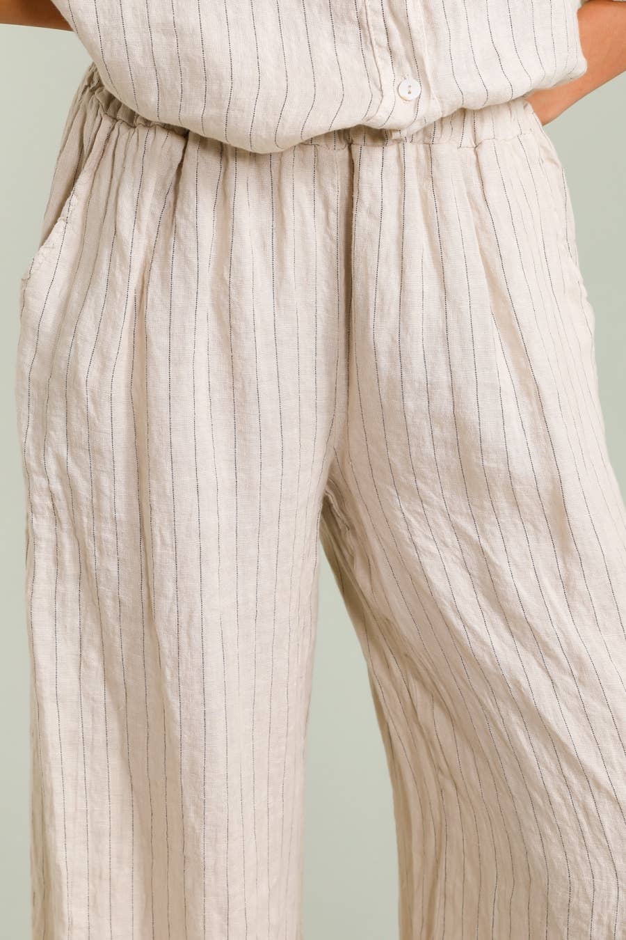 WIDE STRIPED PANTS ELASTIC AT THE WAIST 100% LINEN ONE SIZE (36-42) THE MANNEQUIN MEASURES 1.71m PRODUCT MADE IN ITALY REF LI10126